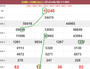 - Kết quả ngày 04/01/2024 gồm có giải đặc biệt là 10240 và giải nhất là 34474. Dựa vào đây, mọi người có thể cho ra một kết quả lô đẹp đó chính là 24 – 42.