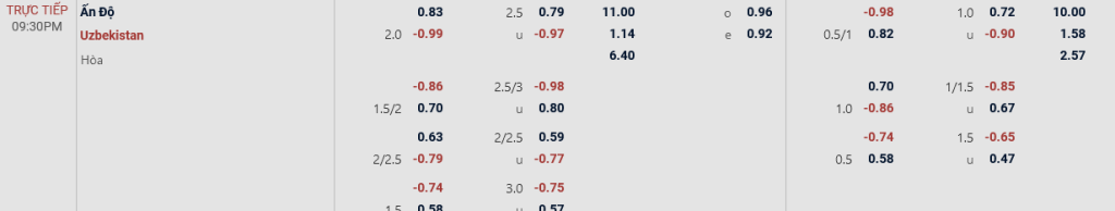 Với những gì cả Ấn Độ lẫn Uzberkistan đã thể hiện trong thời gian qua thì không khó hiểu khi nhà cái đưa ra giá chấp vô cùng cao cho trận đấu này.