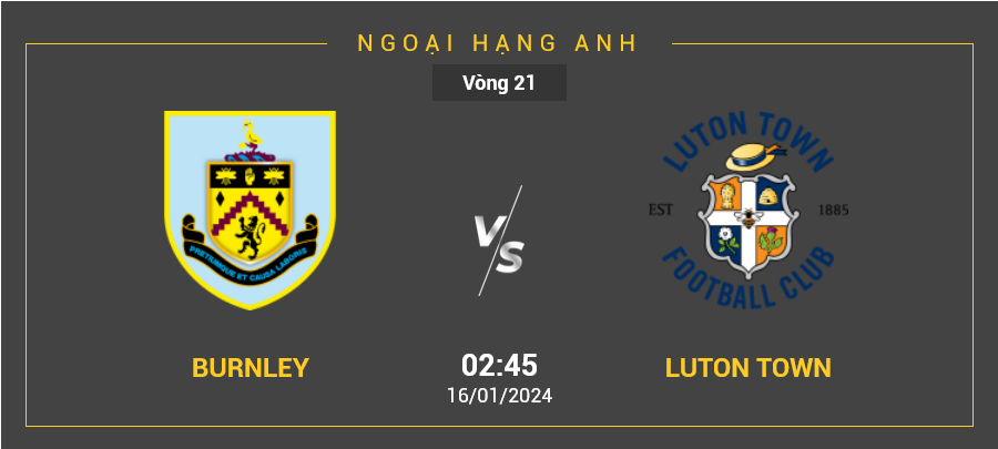 Burnley đấu với Luton Town được xem là trận cầu 6 điểm thuộc vòng 21 Ngoại Hạng Anh bởi cả hai đội đều đang nằm ở nhóm cầm đèn đỏ. Sau 20 vòng đấu, Luton Town đang xếp thứ 18 với 15 điểm có được. Trong khi đó, Burnley còn bi đát hơn khi mới chỉ thu về 11 điểm sau 20 lần ra quân.